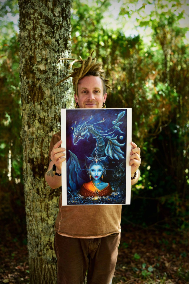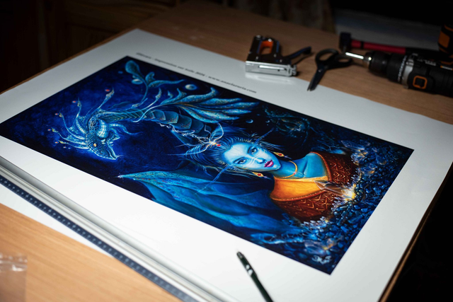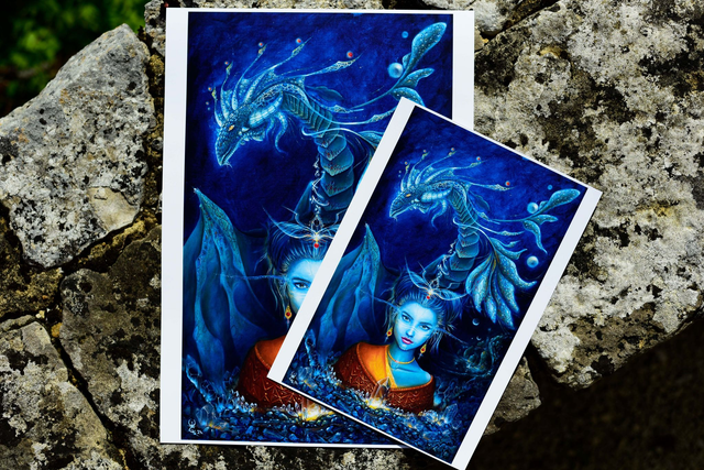 Impression de la peinture " illüvara" sur papier 350g au format A4, A3 et sur toile en coton, montée sur châssis en bois ou non, format 60 cm sur 37cm.