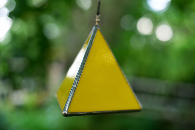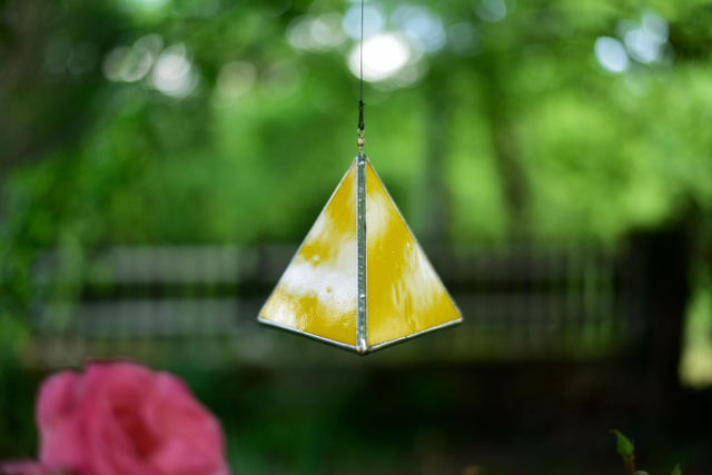 Tétraèdre en verre avec émerillon pour fixation pour le suspendre.