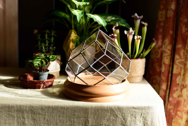 Zome à 7 côtés en verre avec son socle en bois ( optionnel ).