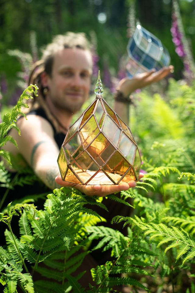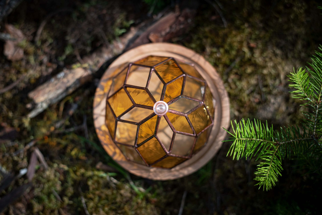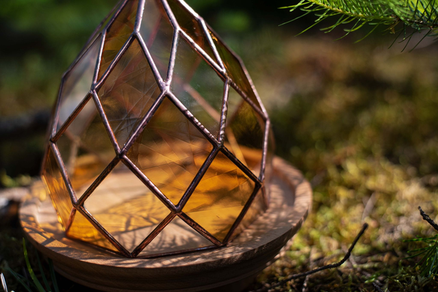 Zome à 8 côtés en verre avec option : socle en merisier.